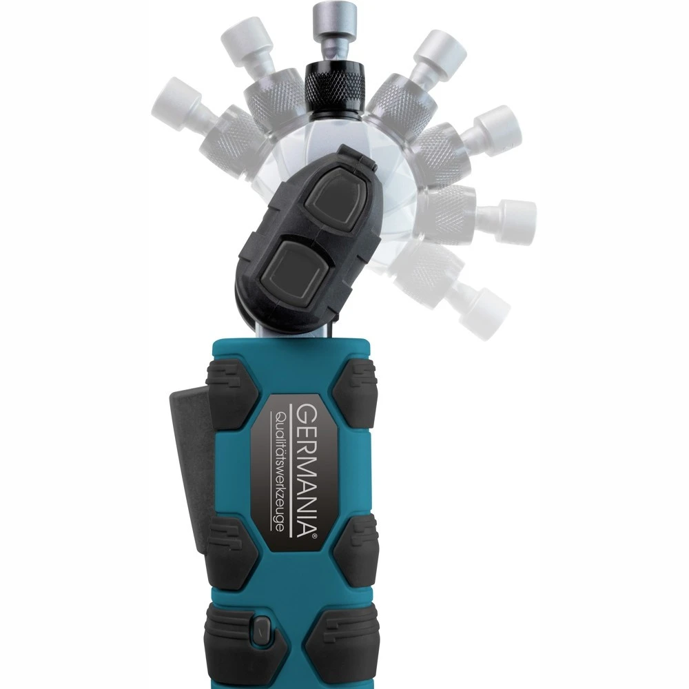 Der GERMANIA Präzisionsschrauber ist ein hochwertiger Akkuschrauber mit einem 7,2 V Li-Ion-Akku, der für nahezu unbegrenzte Einsatzmöglichkeiten sorgt. Er eignet sich perfekt für schwer zugängliche Stellen dank seines um 360° verstellbaren Kopfes, der die Arbeit entsprechend erleichtert. Der Akku des GERMANIA Präzisionsschraubers hat eine Kapazität von 700mAh Li-Ion und eine Ladezeit von ca. 1 Stunde. Die Leerlaufdrehzahl beträgt ca. 0-175 U/min und das maximale Drehmoment liegt bei ca. 5 Nm. Der Bithalter hat eine Größe von ca. 6,35 mm. Die integrierte LED-Arbeitsleuchte ist besonders praktisch, um dunkle Ecken und Winkel auszuleuchten und so noch präziser arbeiten zu können.