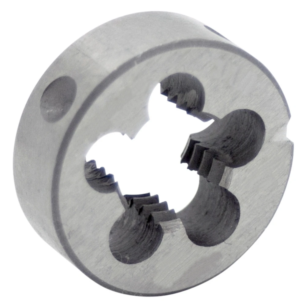 Schneideisen zur Herstellung von metrischen Außengewinden nach ISO-Norm. Präzise gefertigt aus HSS-Stahl.