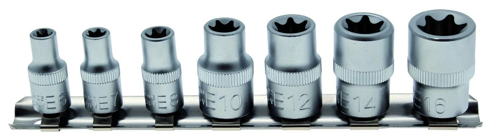 - 1 x Steckschlüsseleinsätze E6 bis E16 7-teilig aus CV